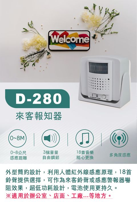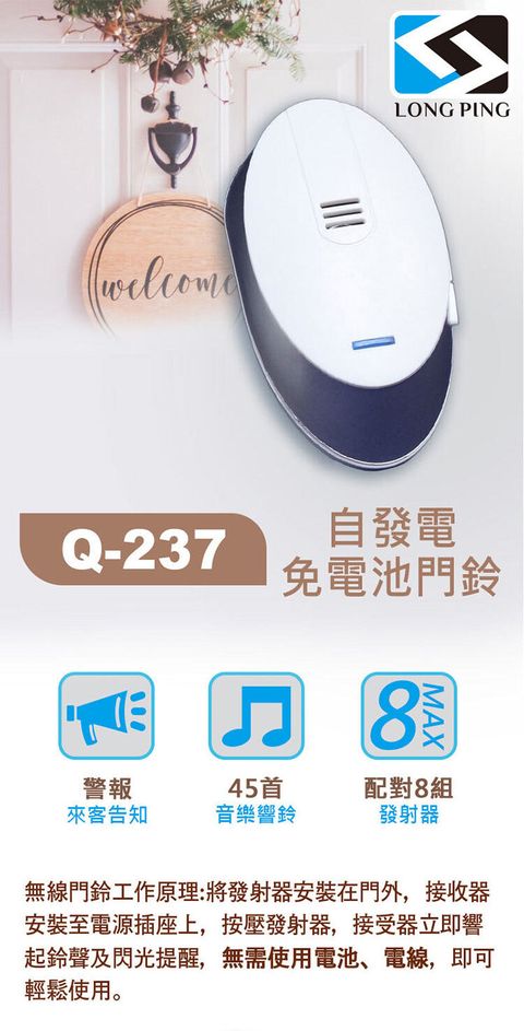 LongPing 感應報知數位門鈴(含無線發射器)D-545A