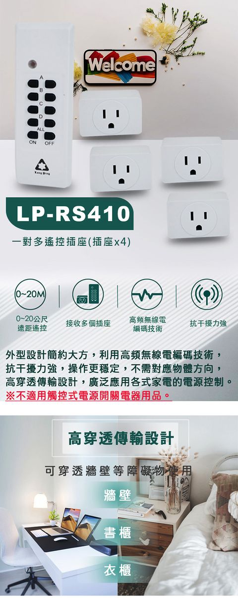 LongPing 一對多遙控插座LP-RS410(插座x4)